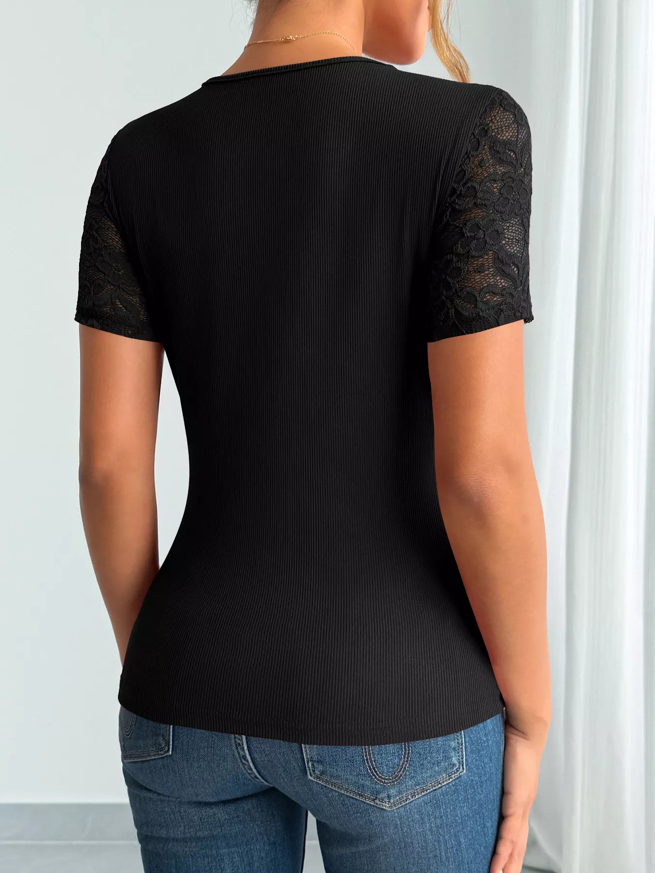 Elegant Lace Trim V-Neck Fitted Top